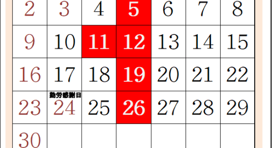 5(水)、11(火)、12(水)、19(水)、26(水)の予定です。