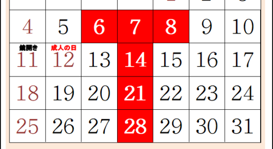 6(火)、7(水)、8(木)、14(水)、21(水)、28(水)の予定です。