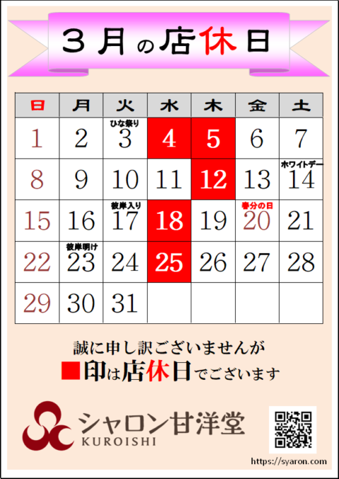 店休日202603