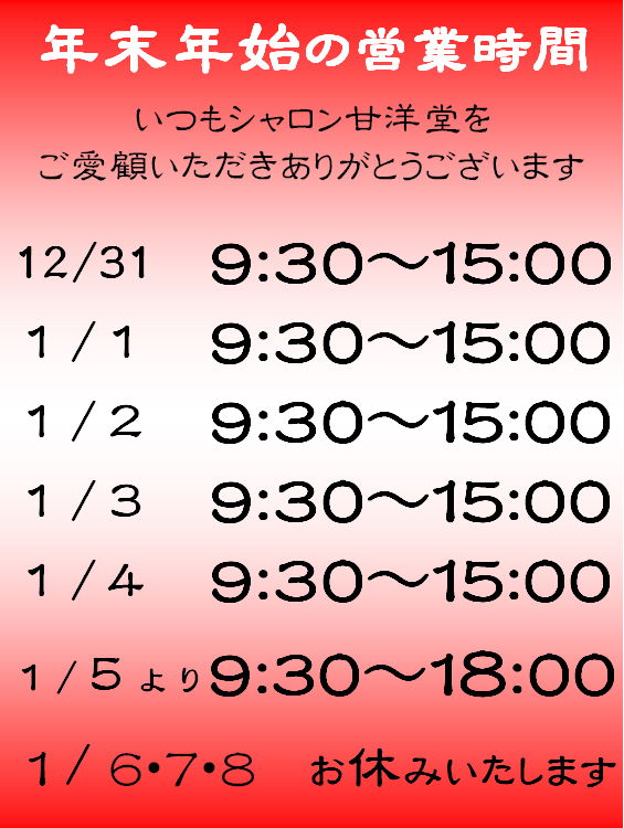 クリスマス期間中たくさんのご来店、お買上げありがとうございました。